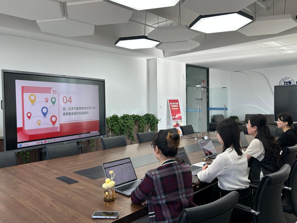 全体人员表示,要切实把思想和行动统一到党中央决策部署上来,深学细悟习近平总书记关于加强党的作风建设的重要论述,着力以严实作风推动我校创新创业教育高质量发展。
