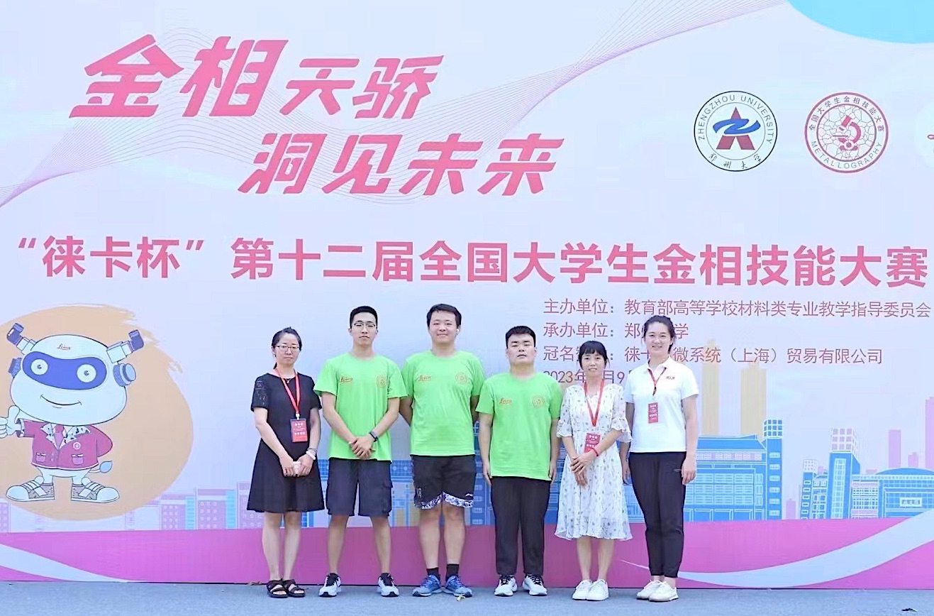 8月9日-14日,由教育部高等学校材料类专业教学指导委员会主办、郑州大学承办的“徕卡杯”第十二届全国大学生金相技能大赛决赛举行。由我校材料科学与工程学院梁亚红、王晓欢、孙丽、白曙光4位老师指导的秦孟泽、刘昌鑫、付嘉成3位同学分别荣获二等奖1项、三等奖2项。
