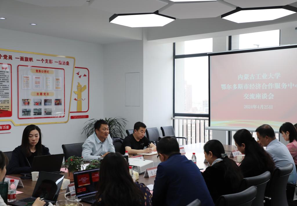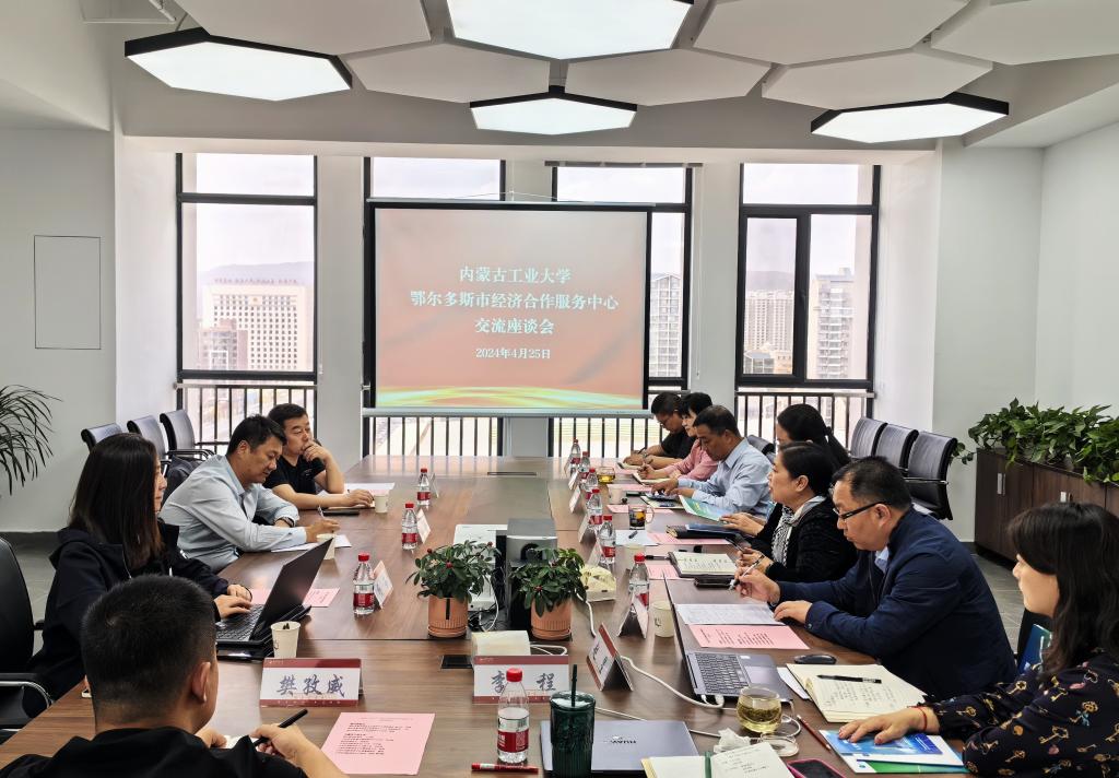 4月25日下午,鄂尔多斯市经济合作服务中心党组成员、副主任张勇一行来我校交流座谈。