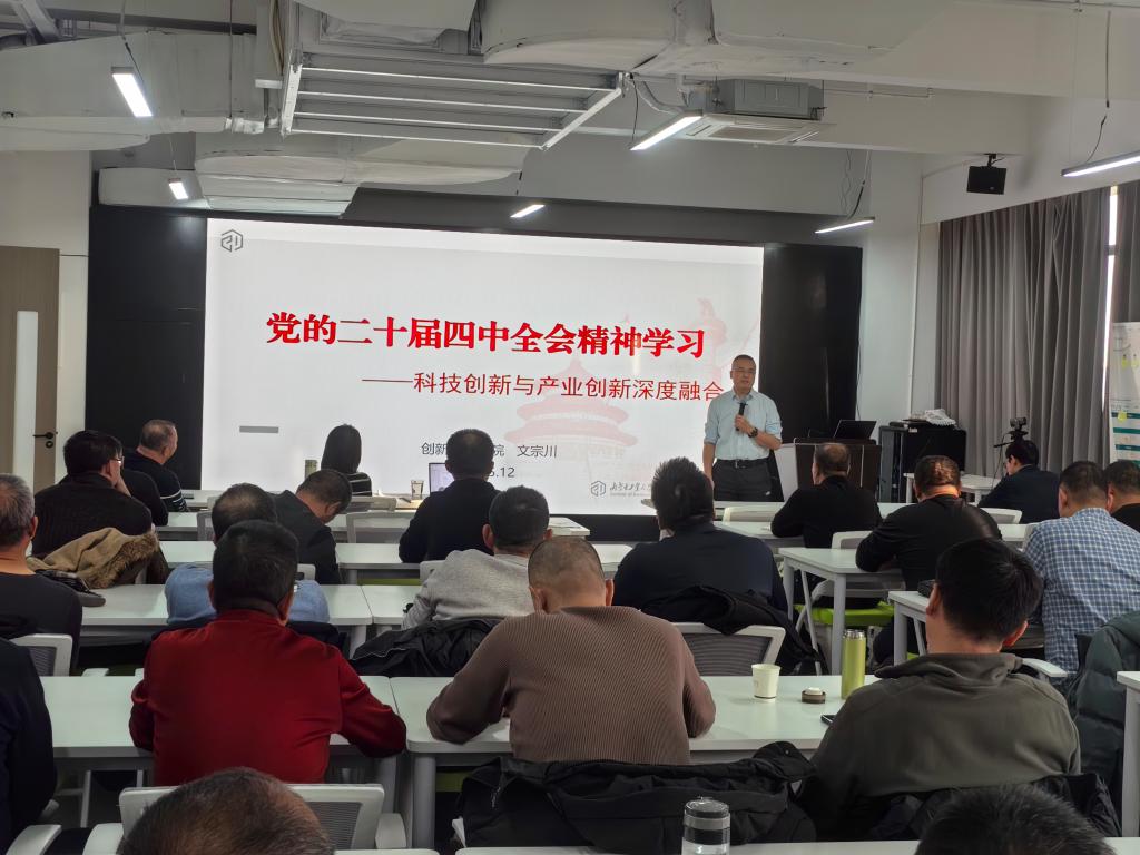 文宗川以“党的二十届四中全会精神学习——科技创新与产业创新深度融合”为主题,为全体教师开展专题培训。他系统阐释了党的二十届四中全会精神的核心内涵,重点围绕教育强国建设、创新驱动发展战略等关键部署,深入剖析政策背后的时代逻辑与实践要求,引导教师深刻领会全会赋予高等教育双创工作的新使命、新任务。同时,结合学院工作实际,进一步明确将政策要求精准融入双创课程体系构建、实践教学改革、优质项目孵化及复合型人才培养全过程的具体路径,为推动双创教育与国家战略同频共振、持续提升人才培养质量筑牢思想根基。