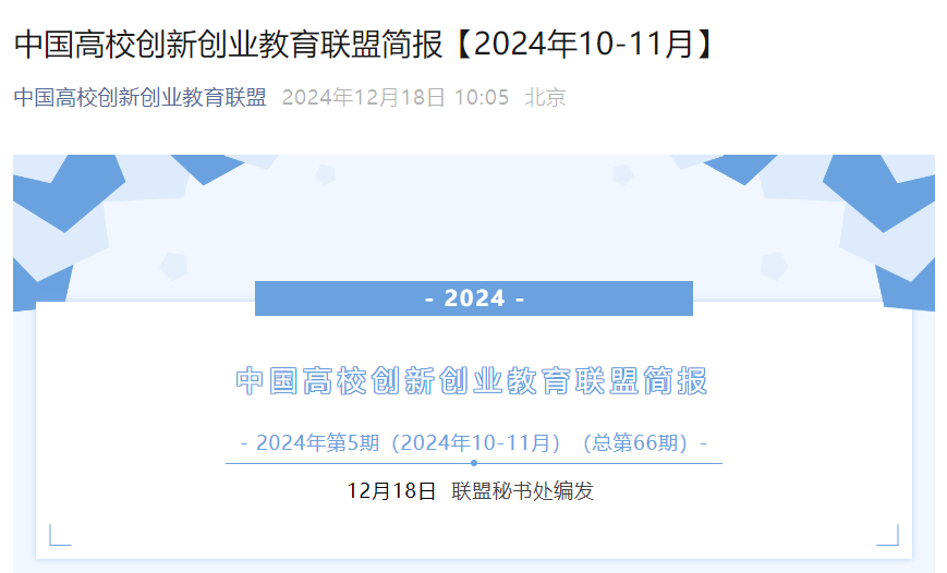【专题报道】中国高校创新创业教育联盟简报(2024年10-11月)