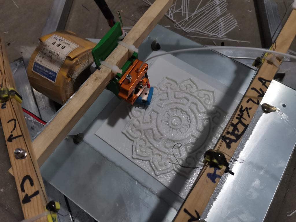 本产品使用自主研发设计的无框架式 3D打印机比较传统3D打印机运输空间小。使用计算机控制的滑轮系统控制绳索的长度,使3D打印机精确的移动到目标位置。