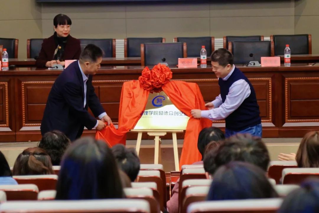 开班仪式上,文宗川致辞,祁龙向邓立治颁发创新创业导师聘书并共同为“经济管理学院励德众创空间”揭牌。